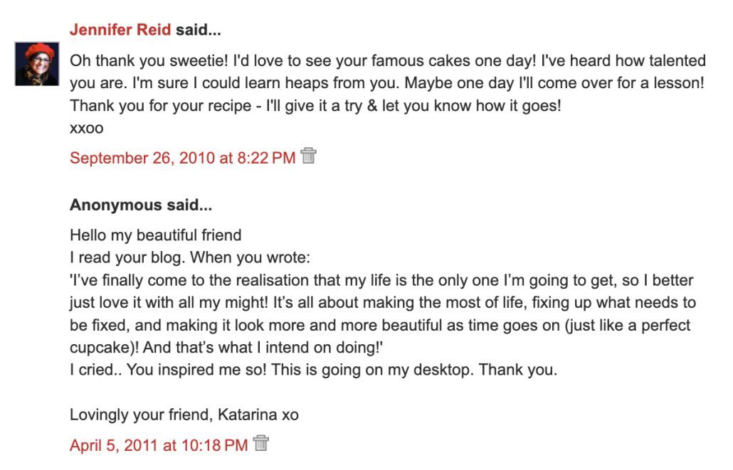 So, it’s great – I’ve finally come to the realisation that my life is the only one I’m going to get, so I better just love it with all my might! It’s all about making the most of life, fixing up what needs to be fixed, and making it look more and more beautiful as time goes on (just like a perfect cupcake)! And that’s what I intend on doing!