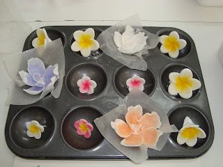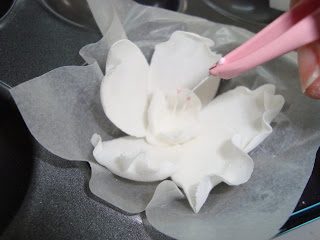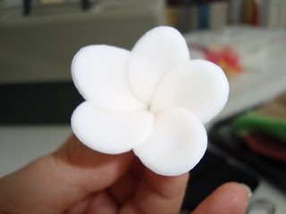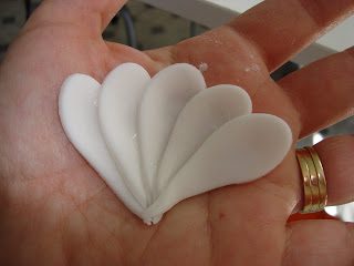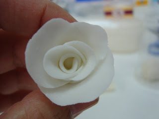 We began by kneading our ready-made “flower moulding paste”, which is a pre-made icing sugar paste. We then used our fingers to roll, press and shape the paste into paper-thin petals, which would soon become our sculpted roses. We had to work at a fairly constant pace, as the paste dries very hard, and it needed to be moulded just right whilst still pliable. The only other tools required were a small paint brush and water (which we used to glue the pieces of the rose together), and a funny plastic instrument with a ball shape on the end (which helped to press the edges of the petals until they were paper-thin). After a bit more kneading, pressing, rocking and rolling, the roses actually began to take shape.