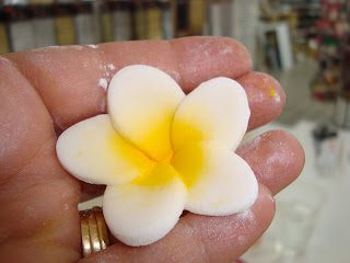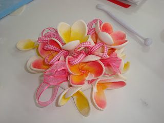 I arrived in class to find a magical bouquet sitting on the table, which had been prepared by the teacher earlier. I had to look twice at the summery bunch of frangipanis, as I thought they were real for a moment. Since my daughter loves frangipanis, I wanted to do a really good job so I could proudly present them to her when I got home. You’ll see how they turned out below, but suffice to say, that she absolutely loved them. My son made the clever comment “I could have done that”. When I asked how, he answered, “Just go out to the garden and pick them”. That was his way of telling me how real my flowers looked. Then my husband got home and said how amazing they looked as well. I was chuffed with their reaction!