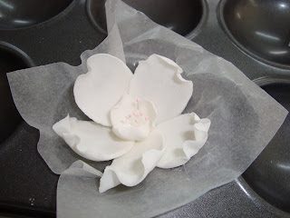 Our teacher gave us the option of either using our hand-made flowers to decorate the cake or we could make something else. I wanted to learn something new, so I’m going to create a beautiful ribbon to sit atop my cake. Since it’s a two part lesson, I won’t be able to show photos of the finished product until next week, but I’m hoping that it will look something like this: