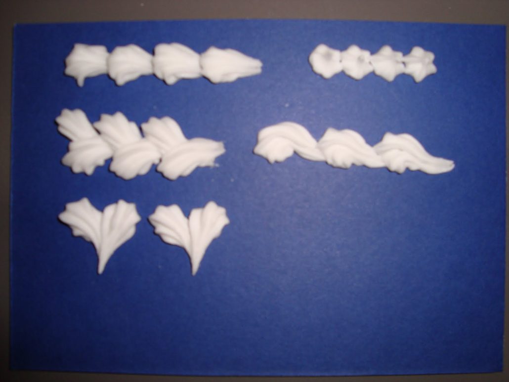 It was a huge mess getting it into the piping bag, but it actually looked much better when we squeezed it out. By the end of the two hours of squeezing, we were finally producing some very beautiful icing patterns and were quite proud of ourselves. It’ll be interesting to see how “professional” our decorating skills are by the end of the 7 week course.