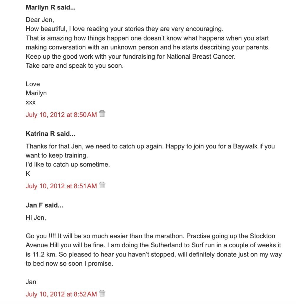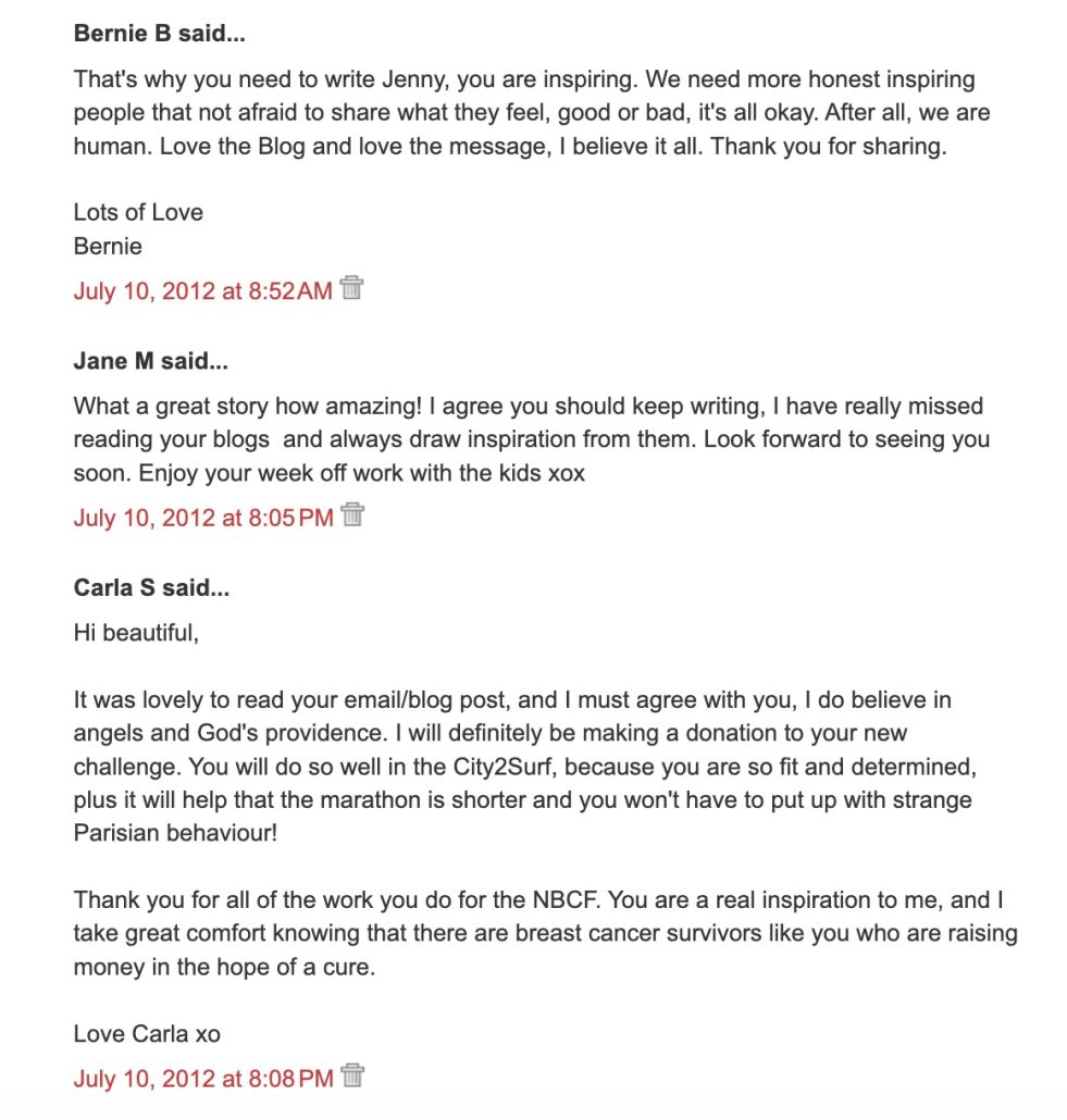 IMPORTANT NOTE: Please support the continuation of my Road to Paris fundraiser…my new City2surf challenge for the NBCF. You can make a tax-deductible donation online at my Everyday Hero Fundraising Page! Thanks, love ya heaps xx